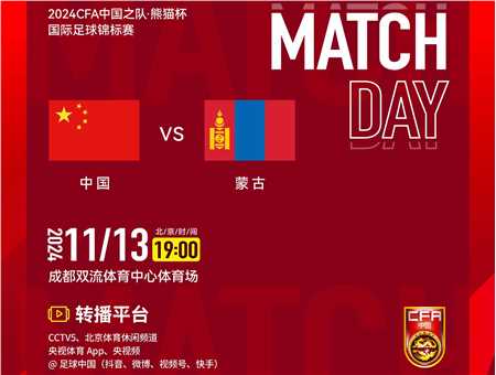 北京时间11月13日晚(今晚)19时,2024cfa中国之队-熊猫杯国际足球锦标赛首个比赛日的一场比赛在成都双流体育中心体育场上演,以东道主身份出战的中国u-19国家男子足球队坐镇主场,迎战亚洲传统鱼腩蒙古u-19国家男子足球队。